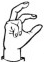 На ћирилици написано НАДЈА КАЗИМИРОВИЋ састоји се из 16 слова [?]. Исписано ћириличном једноручном азбуком за глувонеме: